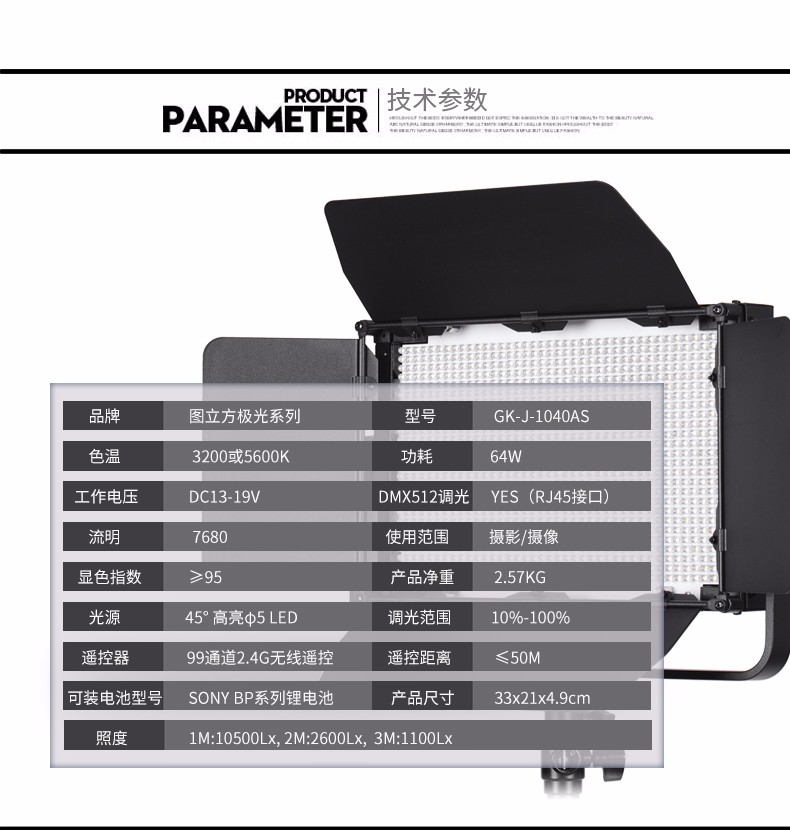 Tolifo圖立方GK-J-1040AS極光LED影視燈64W單調(diào)光兩燈套裝