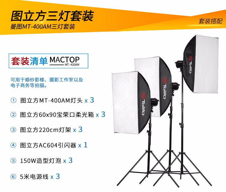 Tolifo圖立方MT-400AM曼圖攝影閃光燈400W攝影棚套裝