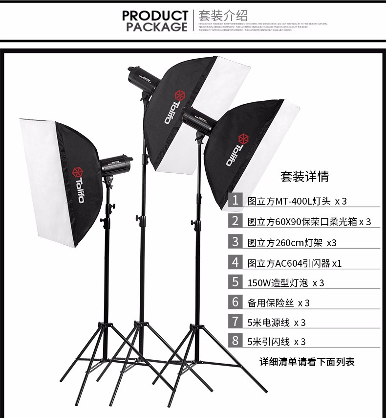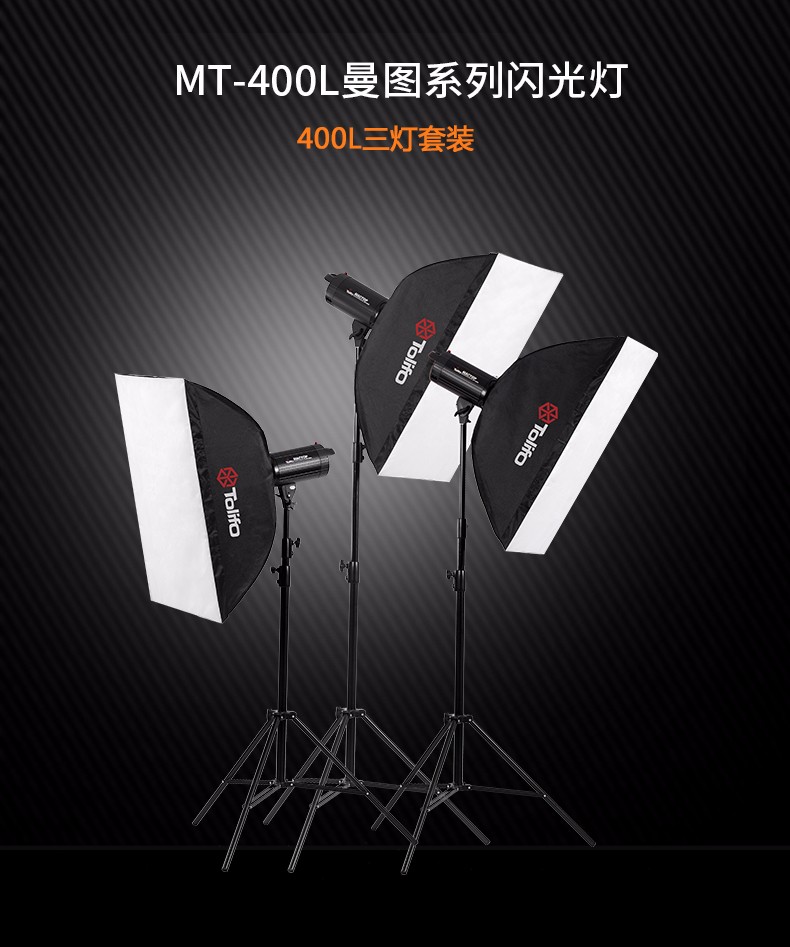 Tolifo圖立方MT-400L攝影閃光燈數(shù)碼顯示攝影棚三燈套裝