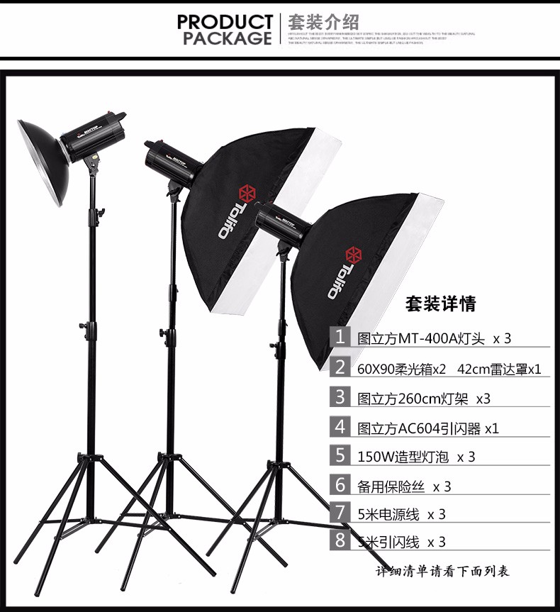 Tolifo圖立方曼圖MT-400A攝影閃光燈3燈+雷達(dá)罩套裝