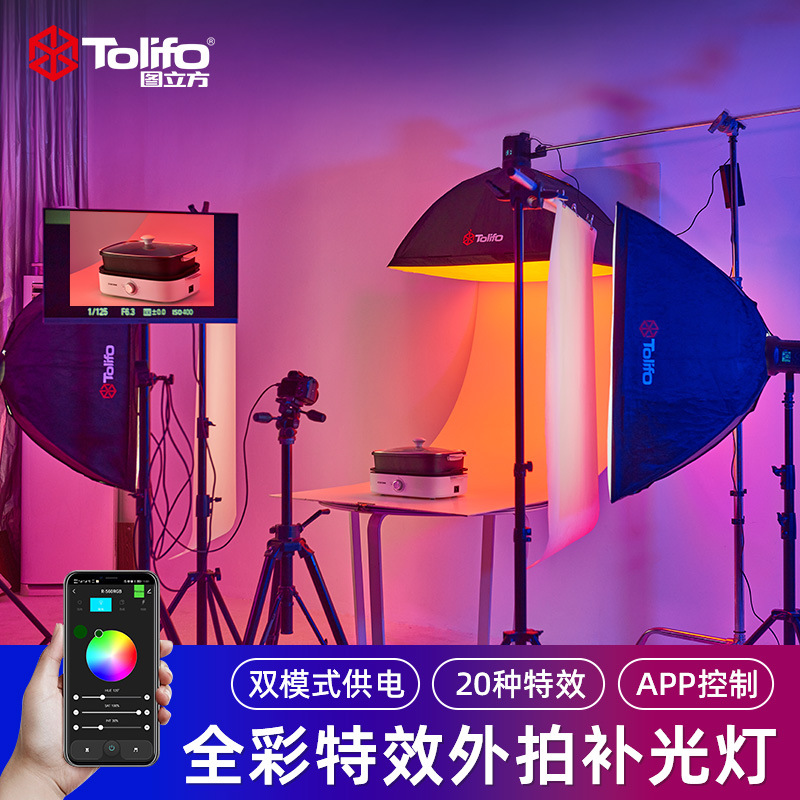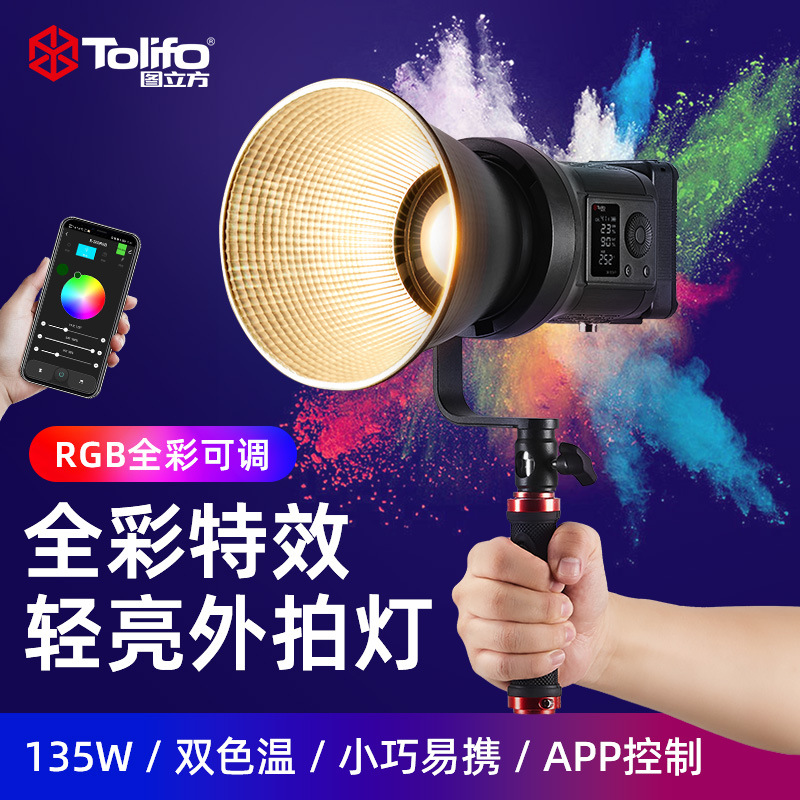 TOLIFO圖立方全彩RGB手持直播補(bǔ)光燈批發(fā)便攜直播燈光打光燈led攝影燈發(fā)絲燈SK-135FR